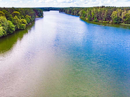 Aerial view. Lake and green forest in Tuchola national park, Poland. Summer landscape in Europe.