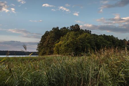 Beautiful lake landscape after sunset. Daybreak landscape of lake in Mazury lake district