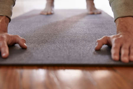 Cropped image rolling yoga mat
