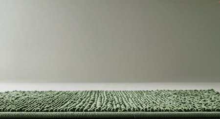 AI Generated. Textured Green Northern Washed Thick Loops Rug with Empty Copy Space for Text Promotion or Advertising Use