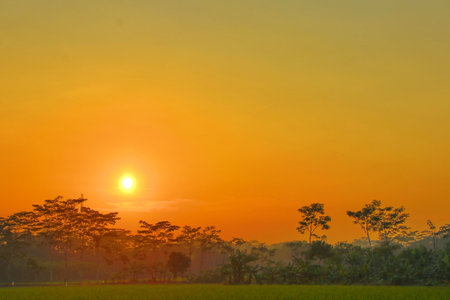 The orange background with the rising sun in the morning