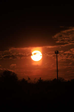 Orange sun with a glow with pathy cloudscape