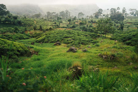 Landscape with green fields of tea in Sri Lanka