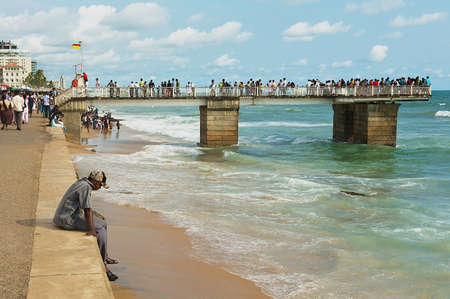 Colombo, Sri Lanka, May 17, 2011 - Young man sits alone at the seaside in Colombo, Sri Lanka.