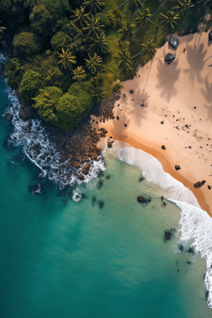 Aerial view of beautiful tropical beach with turquoise ocean waves