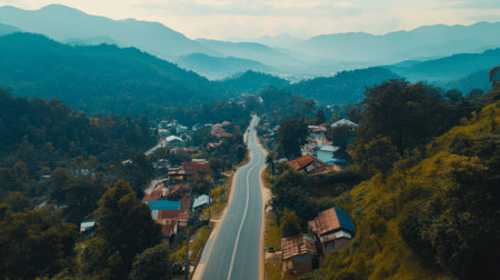 Meandering mountain road through verdant hills at sunrise