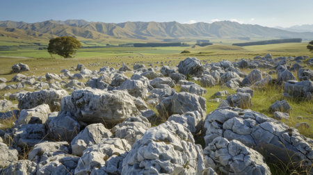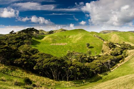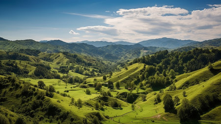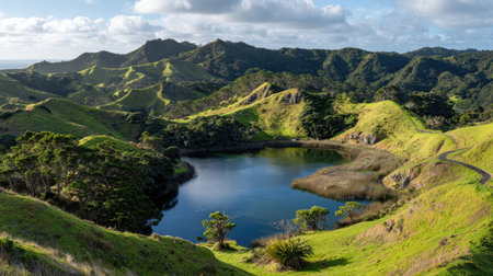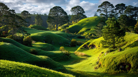 AI Generated. high resolution panoramic landscape with green hills in new zealand northern island
