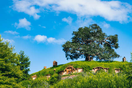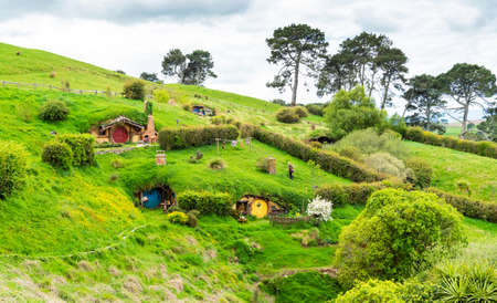 Matamata, New Zealand - June 07, 2017: Hobbiton, a movie set created for the filming of the Lord of the Rings and The Hobbit movies.