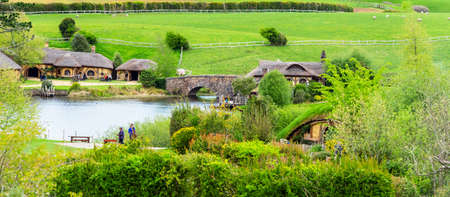 MATAMATA, NEW ZEALAND - AUGUST 2017: Hobbiton movie set featured in Lord of the Rings and Hobbit movies on August 27, 2017 in Matamata
