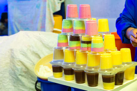 Food in plastic bags on street food of Thailand. Thai food ready to eat.