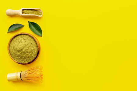 Matcha tea powder with green hot drink - asian tea ceremony