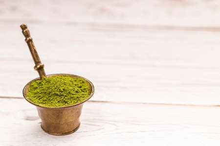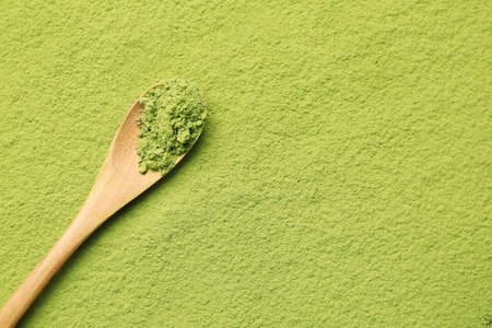 Powdered matcha tea and spoon, closeup
