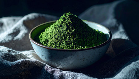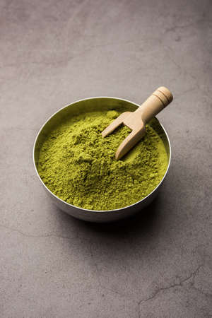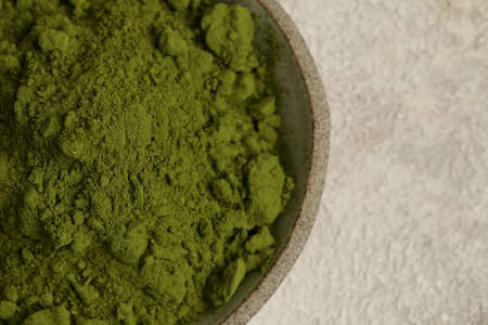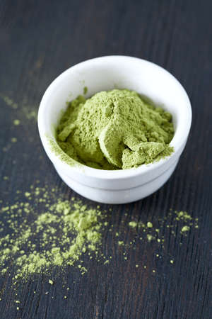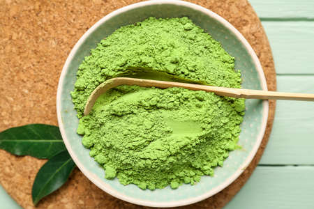green matcha tea powder in bowl