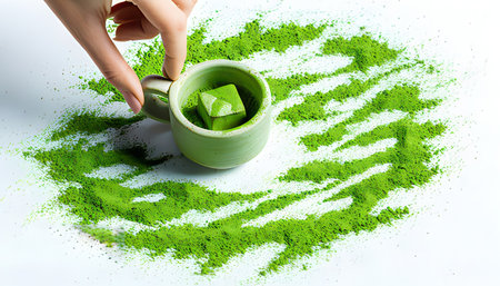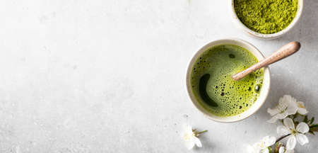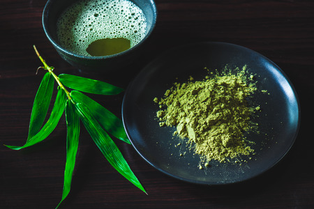 Matcha tea. Tea ceremony with dry powder and hot drink