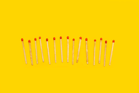 Matches on a yellow background, an abstraction about teamwork and modern relationships.