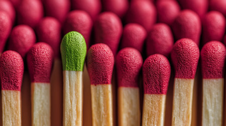 Green matchstick symbolizing individuality, leadership, and uniqueness among a group