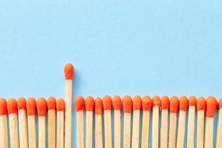 Matches on color background. Concept of uniqueness