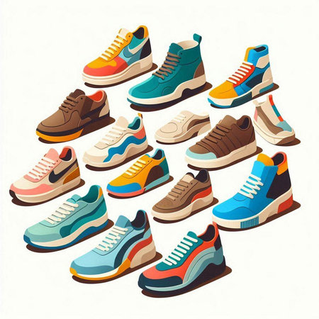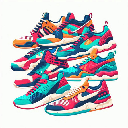 Colorful sneakers isolated on white background. Vector illustration in cartoon style.