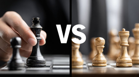 A chess match shows how conservative and aggressive strategies can split a business approach during competitive situations.