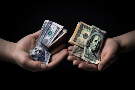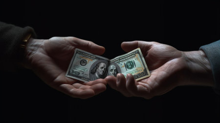 Generative AI : human hands holding money dollars 100 US dollar banknote isolated on white background
