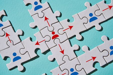 Puzzle pieces as an example of the spread of the virus between people in their interaction.
