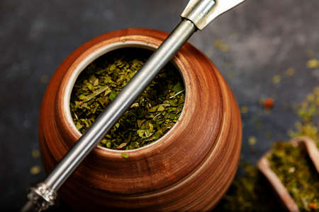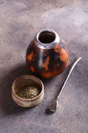 Traditional yerba mate tea in calabash mug and bombilla