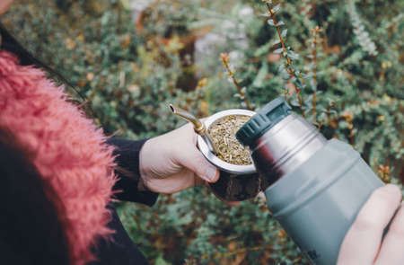 Traditional gaucha drink, chimarrao mate, folk drink from Brazil, Paraguay, Uruguay and Argentina.