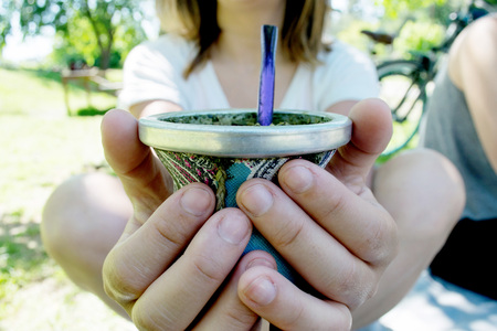 Young woman with a Mate in her hand. Yerba Mate of Argentina.