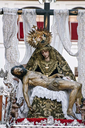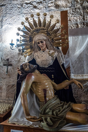 Huelva, Spain - April 1, 2021: Procession exhibited in the Parish of the Immaculate Conception of Huelva on the occasion of Holy Week 2021