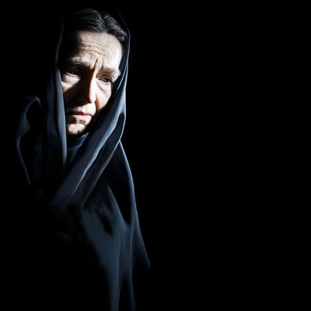 Sad old woman Senior woman in sorrow depressive portrait with wrinkled face