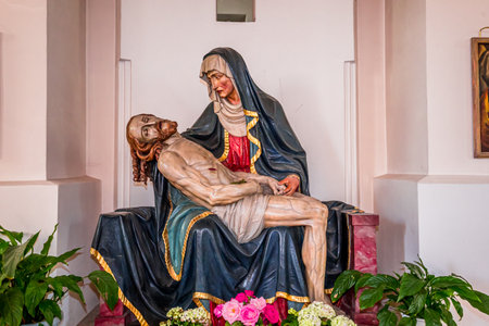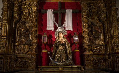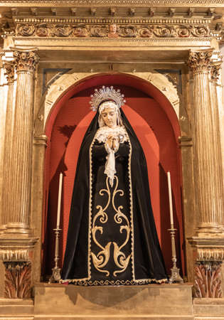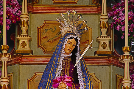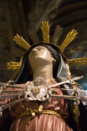 Our Lady of Sorrows statue on the altar Our Lady of Seven Sorrows at the Parish Church of Saint Anne in Lobor, Croatia