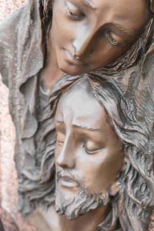 Jesus Christ and Virgin Mary bronze statue. Jesus died in the arms of the Madonna.