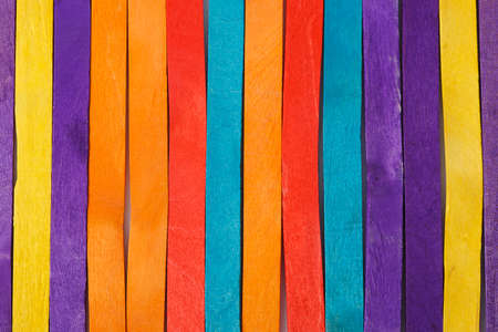 Colorful wooden wall texture background in bright rainbow colors pattern.