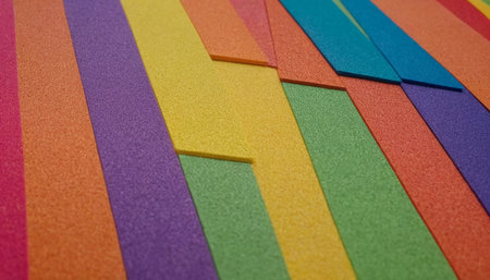 Colorful abstract paper background with vibrant stripes in red, blue, yellow, and orange hues, ideal for creative designs and artistic projects