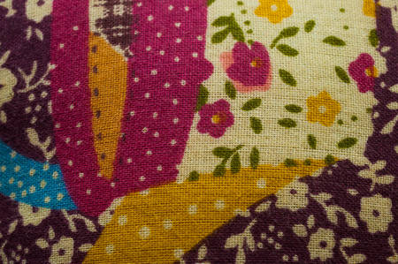 Close up view on colorful hanging and folded fabric textures and textiles in high resolution found on a fabrics market