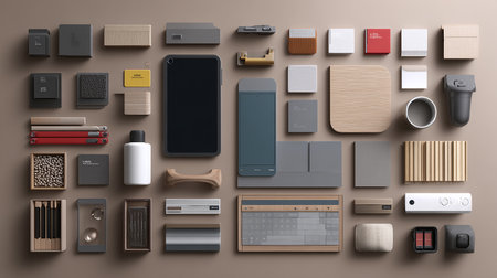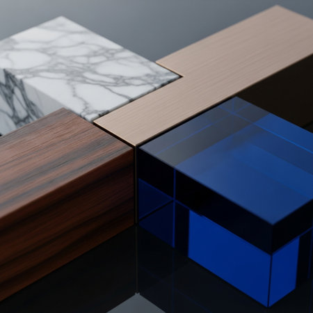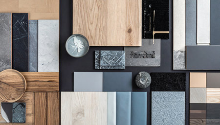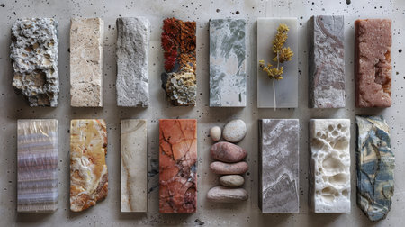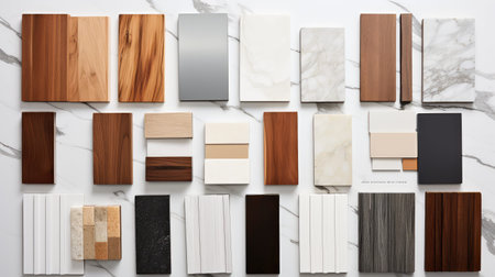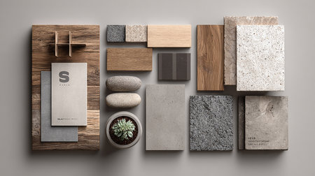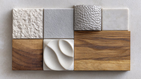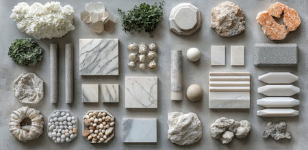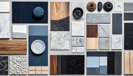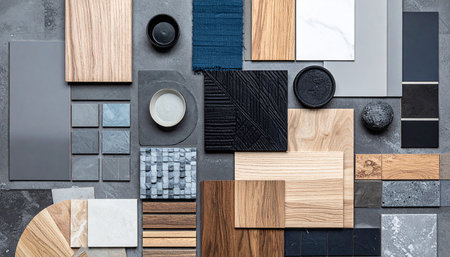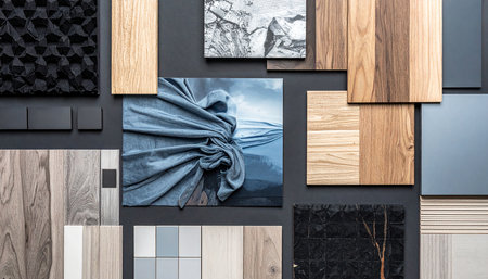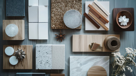 Explore a visually engaging collection of various materials and textures arranged thoughtfully, perfect for use in creative projects and interior design concepts.