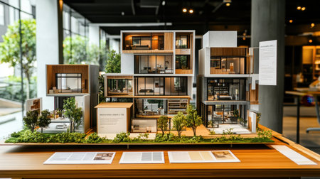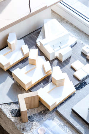 High angle view of wooden architectural model