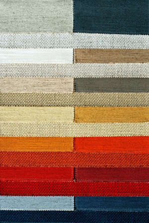Multi-colored samples of upholstery fabric for sofas and chairs close-up. Selection of fabric for interior decoration