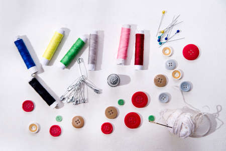 Colorful sewing thread placed on a white back
