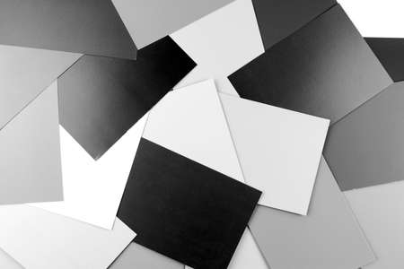 Background of black and white paper sheets. Many sheets of black and white paper