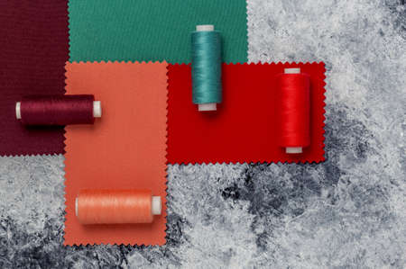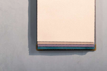 Catalog of multi-colored fabric samples. Textile industry background. Colored cotton fabric. Palet