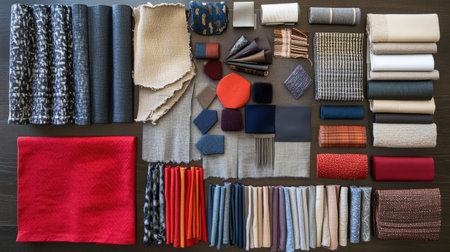 A creative arrangement of assorted fabrics and textiles in various colors and textures, perfect for design projects and artistic inspiration in fashion and decor.