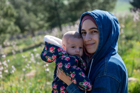 Mother and baby enjoying their time together on a picnic amidst green fields, creating lovely memories