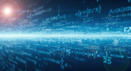 A dynamic, abstract visualization of glowing blue mathematical equations and formulas, suggesting advanced science and technology.