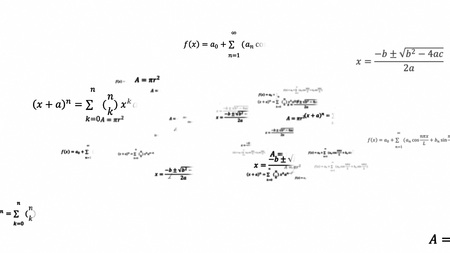 Large number of mathematical formulas on a white background