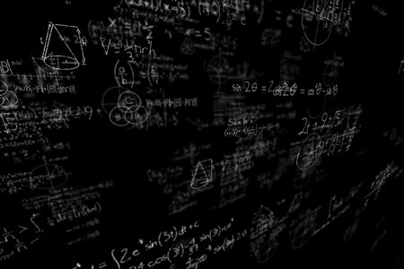 Large number of mathematical formulas on a black background