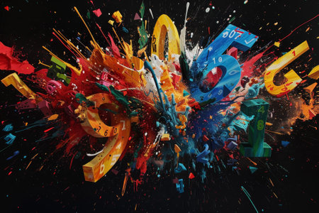 This vibrant abstract background features a dynamic display of multicolored numbers, offering an engaging visual element for creative projects.