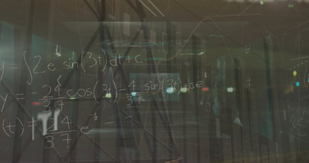 Image of mathematical equations, data processing and statistics. Global business, finance, computing and data processing concept digitally generated image.