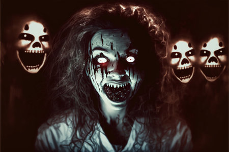 Horror scene of ghost woman death halloween festival in the dark house nightmare