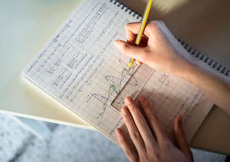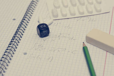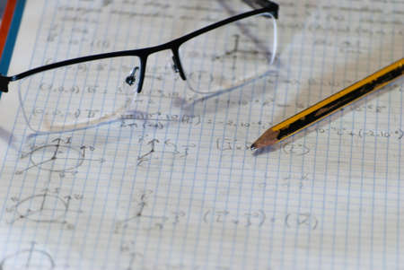Notebook, formulas, mathematical graphics, homework mobile phone pen pencil